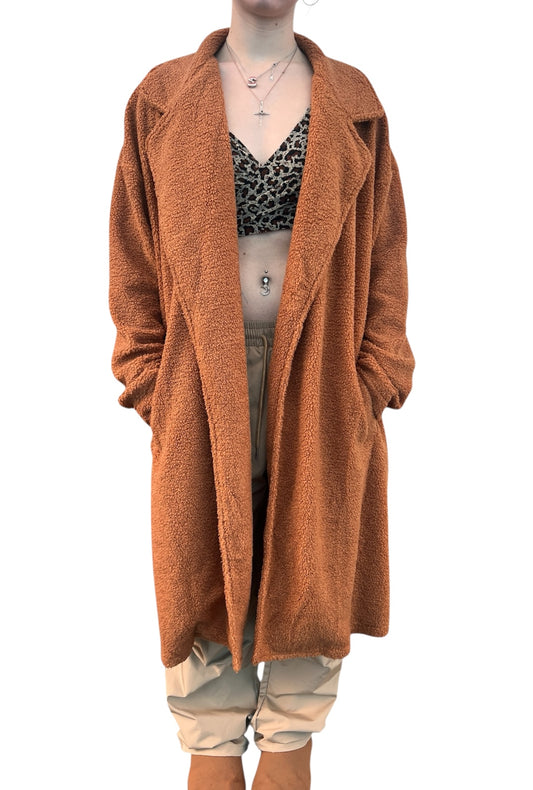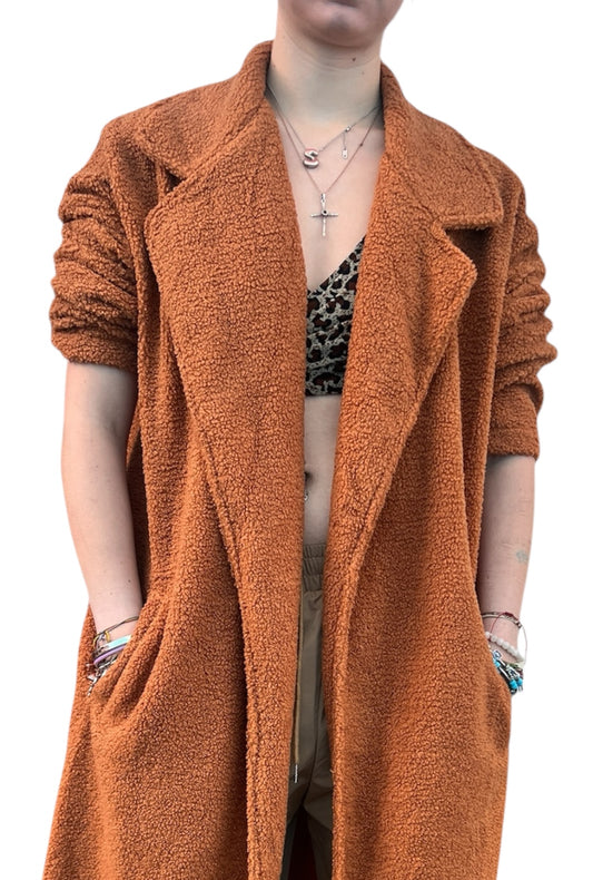Tan Crystal Long Sleeve Ultra Crop Top with Fluffy Trim