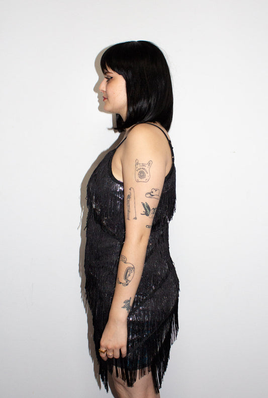 Black Diagonal Fringe Sequined Flapper Dress