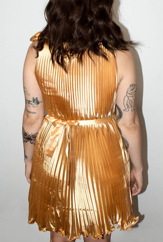 Sold outGatsby Gold High-Neck Pleated Dress