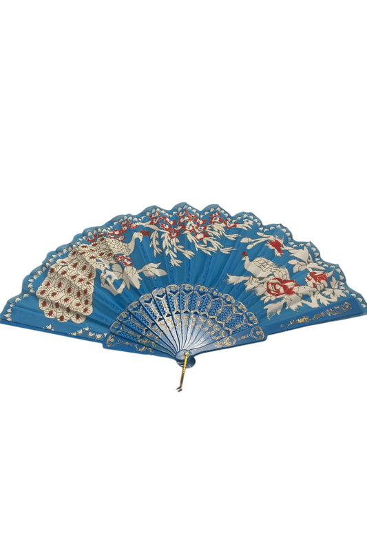 Cream and Gold Hand Fan With Red, Blue and Purple Watercolour Flowers (M)