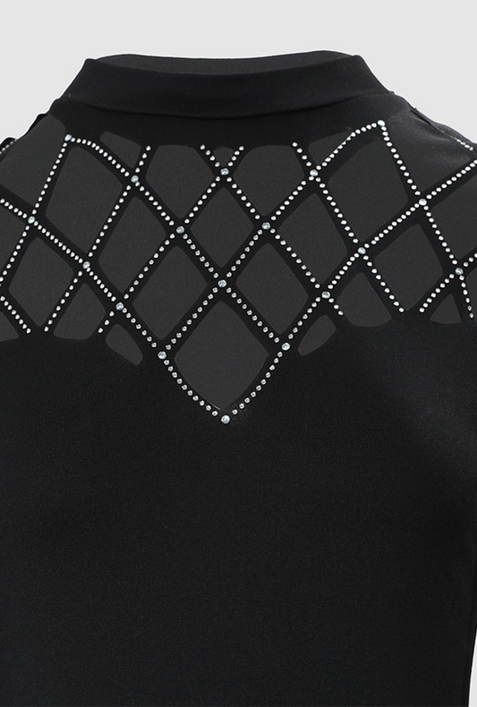 Black Rhinestone Metal Mesh Diamond Cut Top