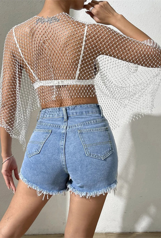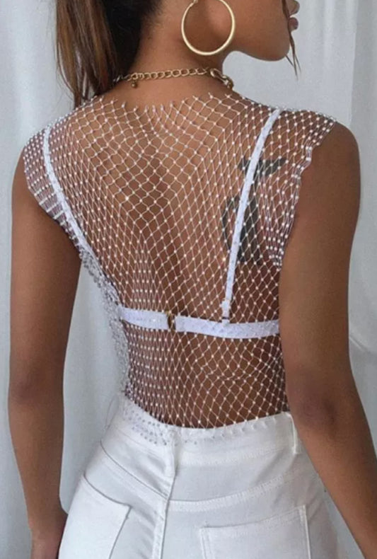 White Lace Top Fishnet Thigh Highs With Back Seam