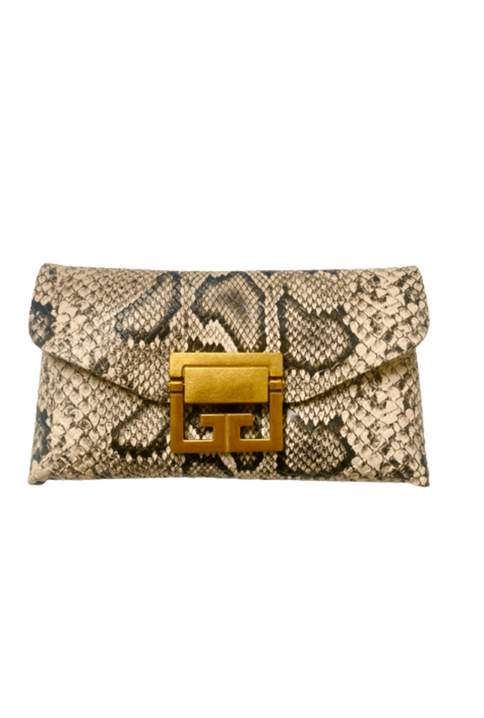 Brown Snakeskin Serpentine Belt Bag With Chain