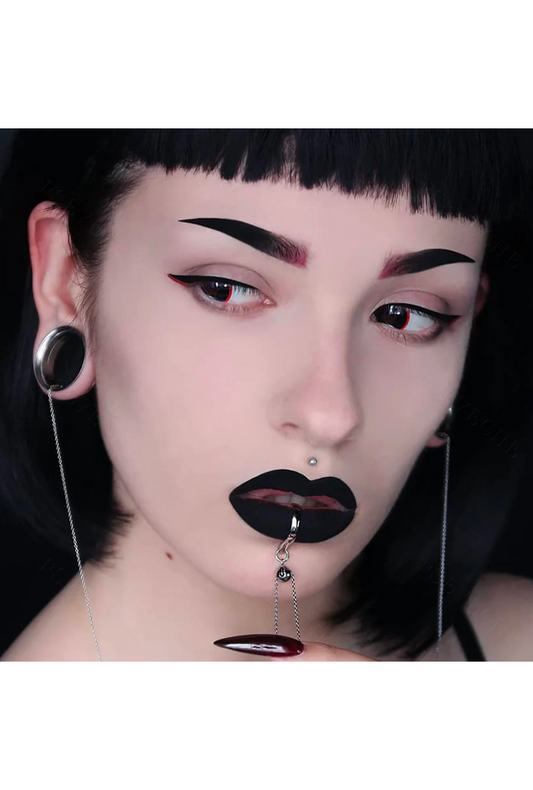 Party Lens #48 Solid Black Red Rim Contact Lenses