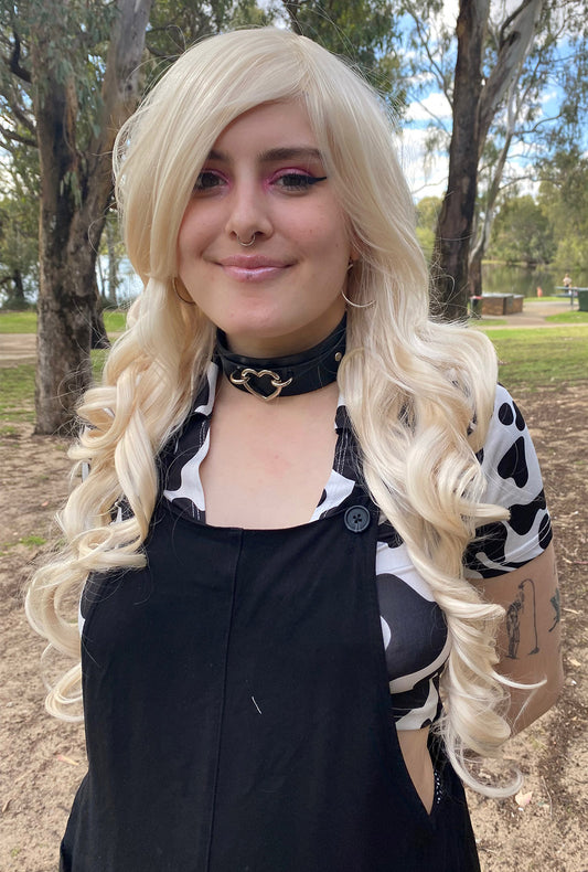 Deluxe Long Platinum Blonde Curly Wig