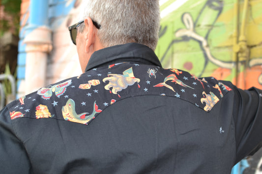 Short Sleeved Tattoo Inspired Button Down Shirt