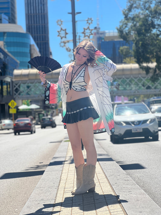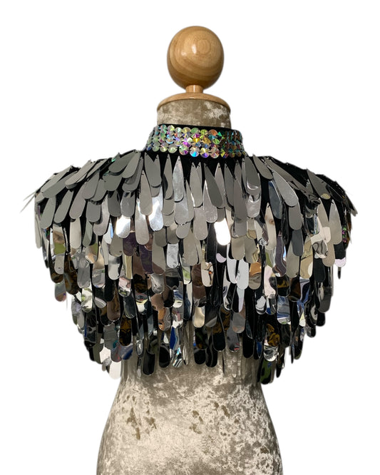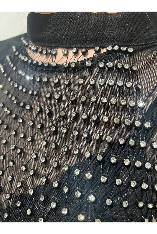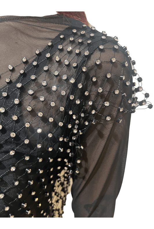 Black Crystal Long Sleeve Top with Fluffy Wrist