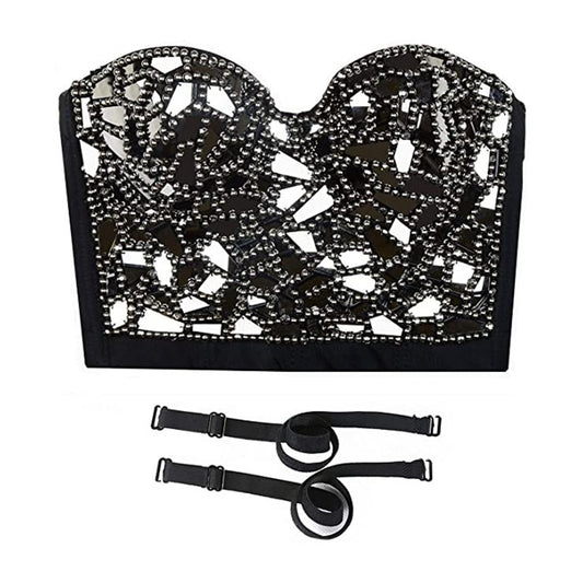 Sexy Silver Grey Sequins And Beads Bustier Crop Top