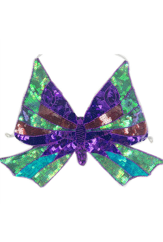 Sequin Periwinkle Purple and Pink Butterfly Halter Top