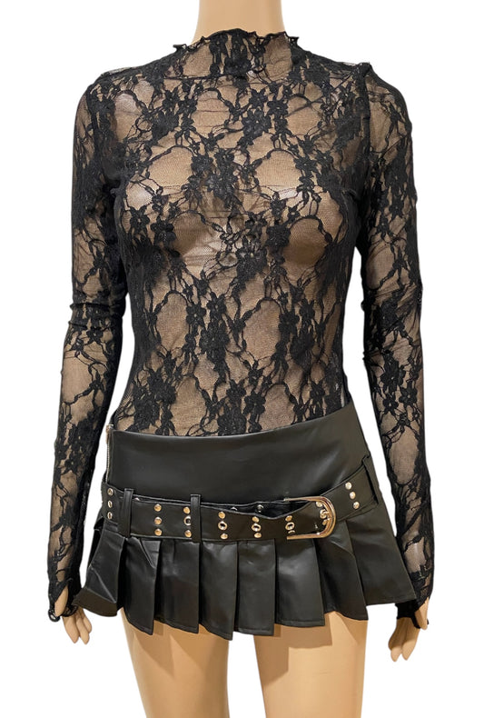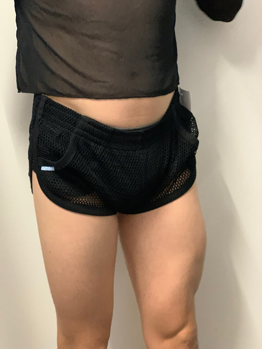 Black Crystal Mesh Short Sleeve Top with Fluffy Shoulder Trim