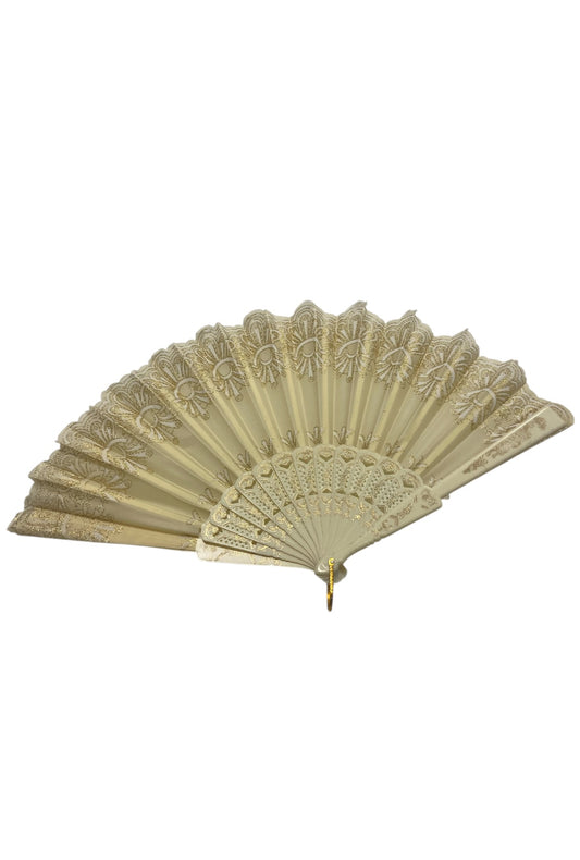 Cream and Gold Hand Fan With Gold Glitter (D)
