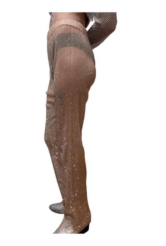 Cream Crystal Mesh Short Sleeve Top with Fluffy Shoulder Trim