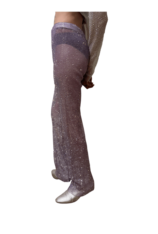 Light Blue Crystal Mesh Short Sleeve Top with Fluffy Shoulder Trim