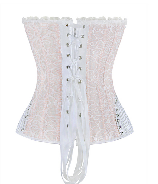 White and Pink Hip and Zip Detail Corset