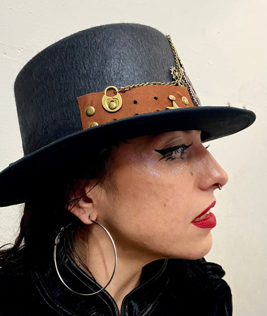 Heart Padlock & Chains Steampunk Top Hat (OO)