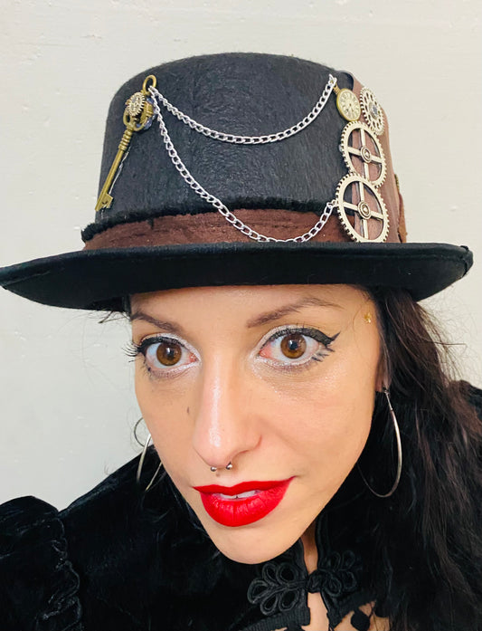 Key and Silver Chains Steampunk Top Hat (NN)