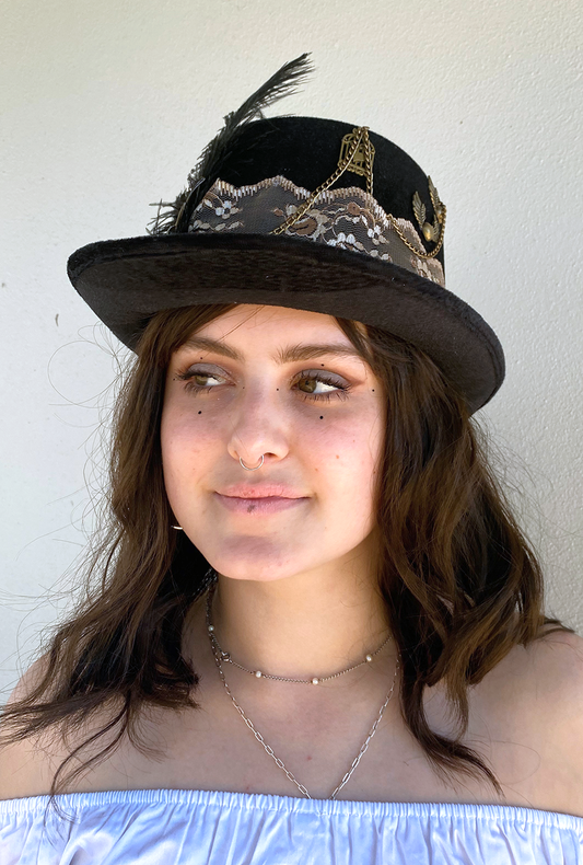 Steampunk Lace Hearts and Chains Hat (YY)