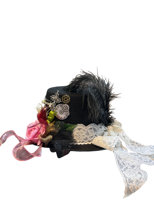 Steampunk Bowler Hat With Red Ribbon And Gem