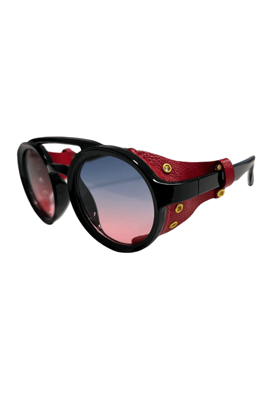 Red & Black Steampunk Glasses with Faux Leather Rivet Details