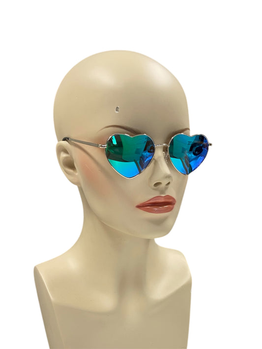 Sea Green Mirrored Fashion Heart Glasses