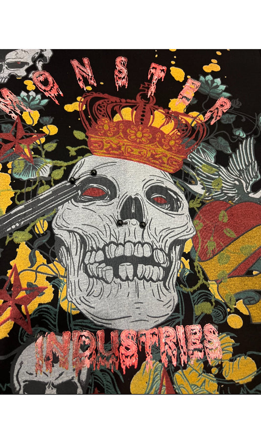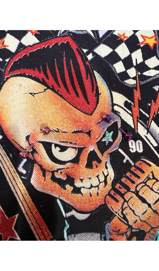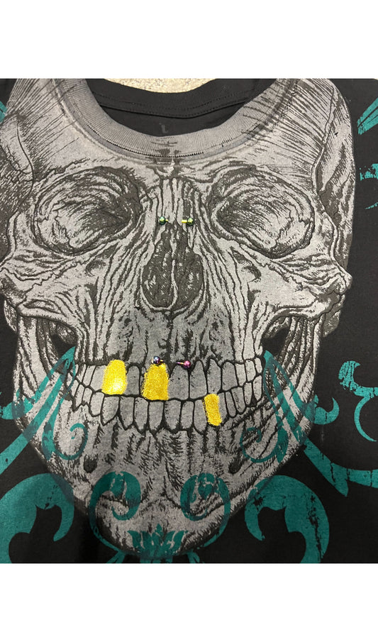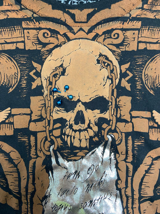 Pierced Short Sleeved Silver and Brown Skull Shirt