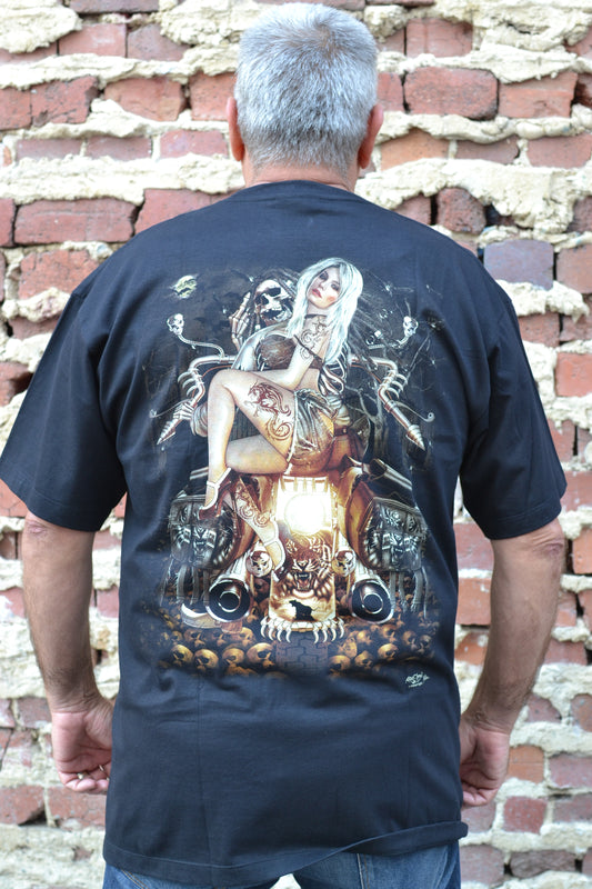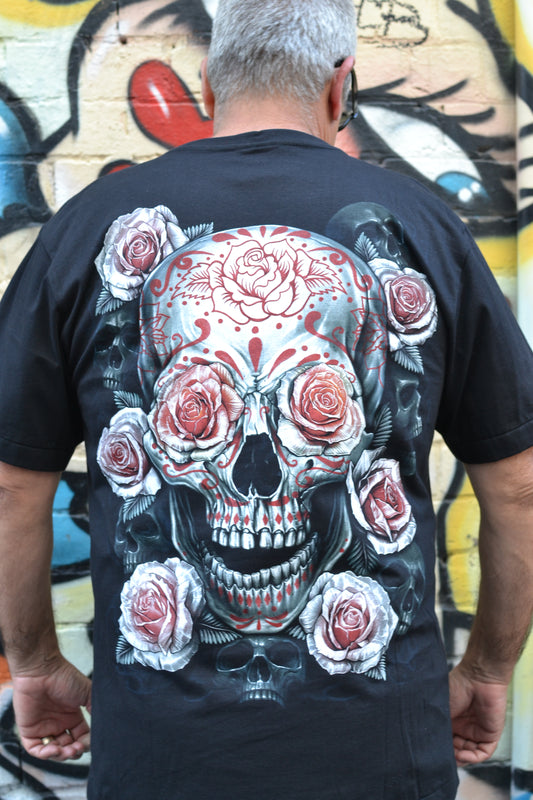 Pierced Short Sleeved Gold and Brown Skull Shirt