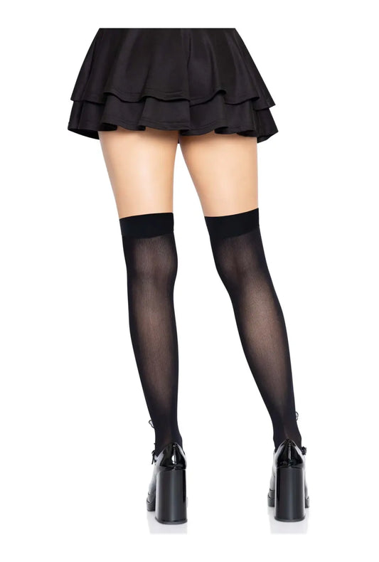 Black Opaque Cut-Out Butterfly Applique Thigh Highs