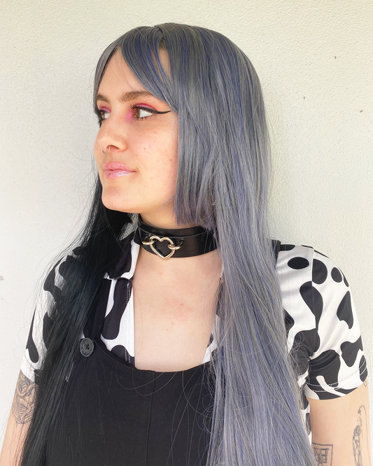 Deluxe Two Toned Long Black and Grey Wig