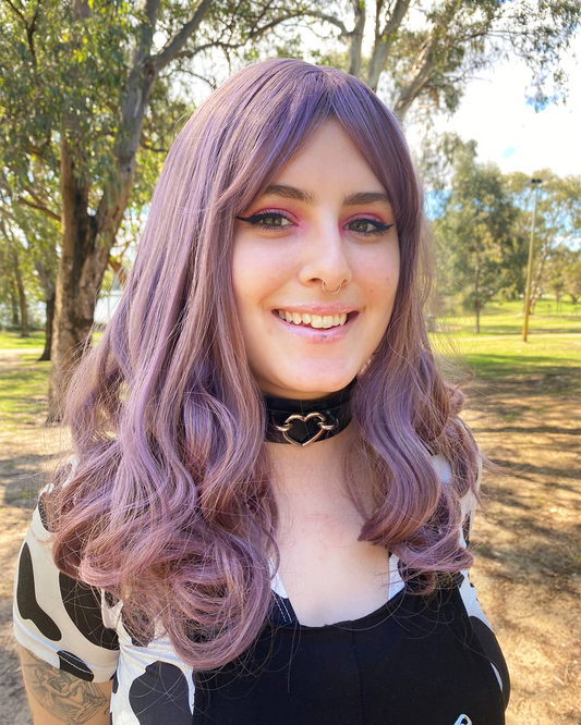 Deluxe Ombre Mid Length Dark to Dusty Purple Wig