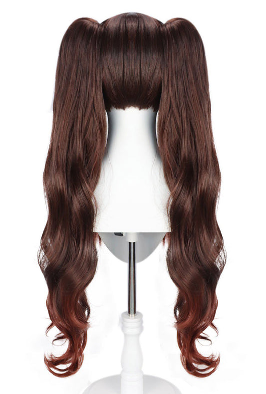 Deluxe Two Toned Long Black & Mauve Brown Wig