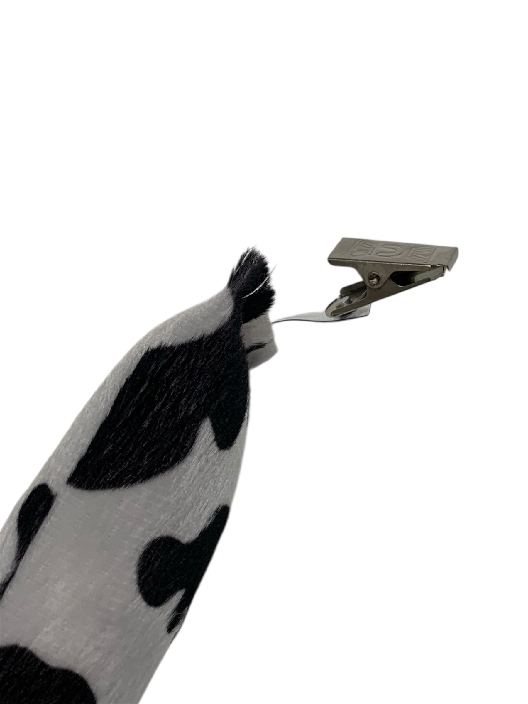 The Clip-on Cow Tail is a plush white and black patches tail with a clip to attach.