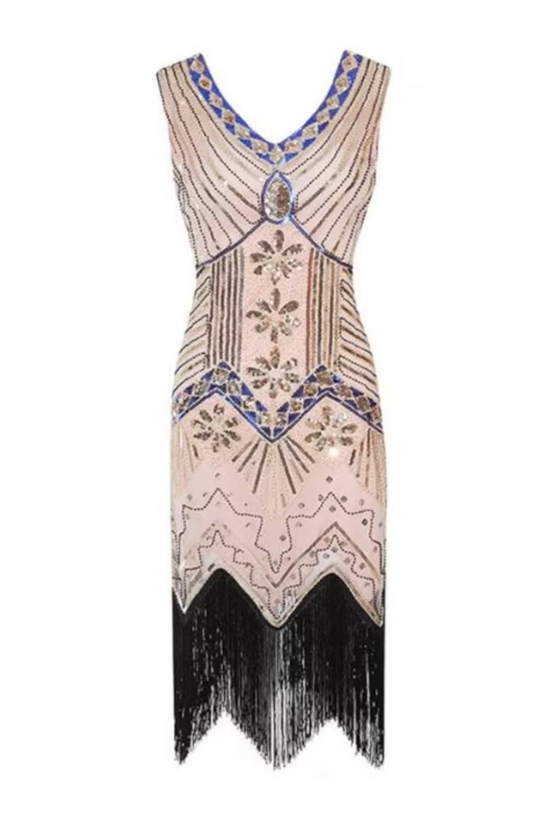 It's time to get your sparkle on with this one-of-a-kind Apricot with Gold and Blue Sequined Gatsby Dress! Whether it's for a night out or a costume party, this flapper-inspired dress is the perfect way to unleash your inner goddess and make a statement. Shine on with sequin style!