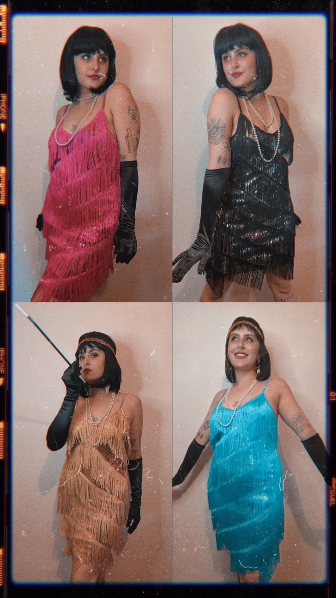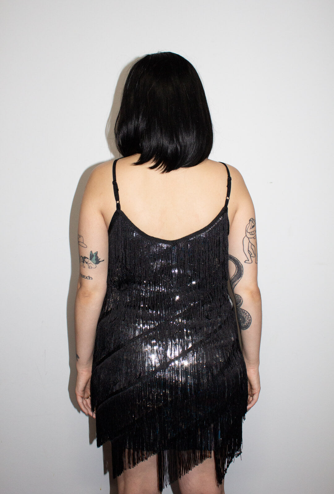 Get your party on with this fun fringed sequin flapper style dress. Inspired by classic 1920s flapper dresses, this purple number is perfect for your Roaring 20s and Great Gatsby parties. Featuring adjustable straps for more personalised fit.