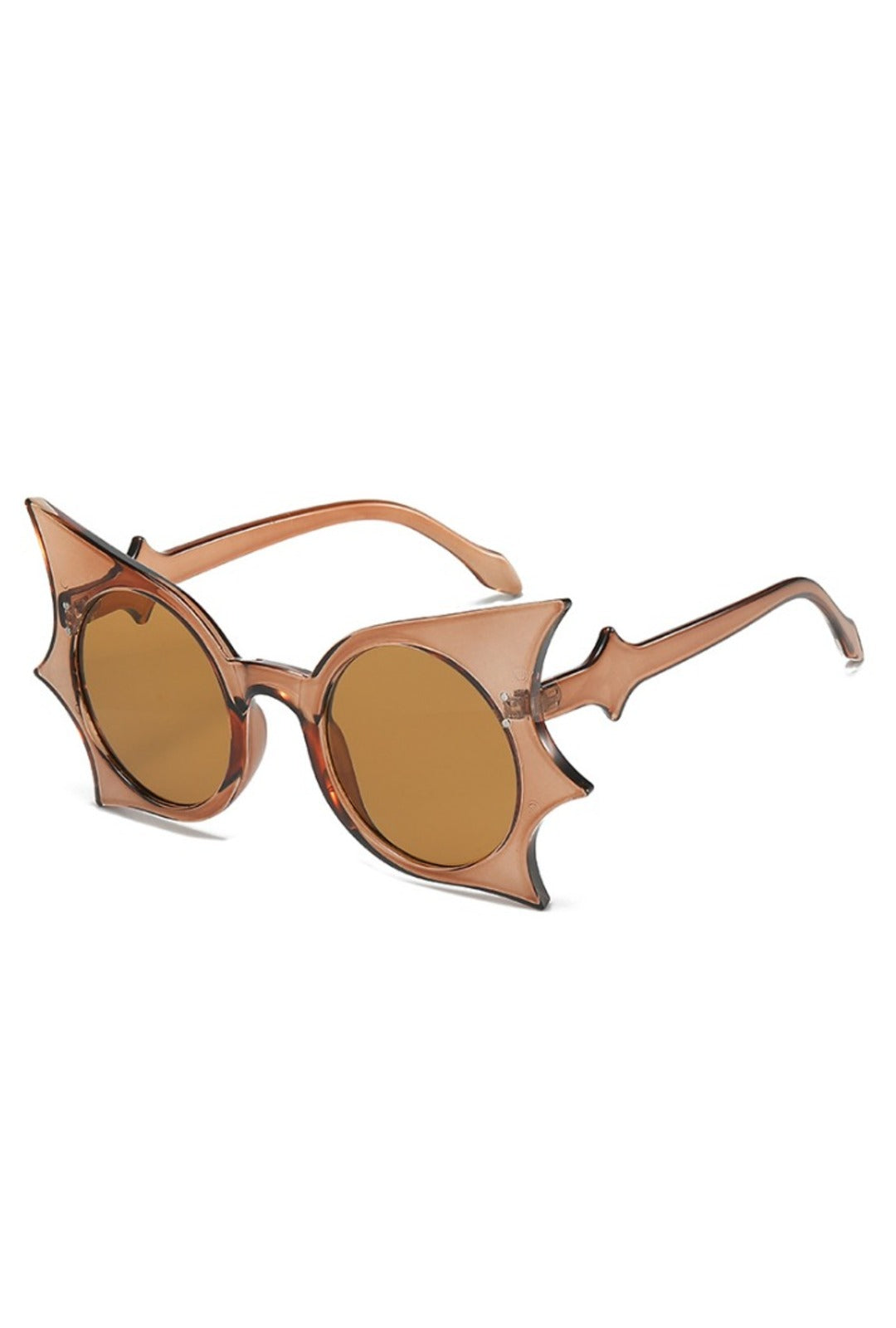 Our Brown Bat Winged Glasses embody stylish mystery! With round frames and edgy bat wing cut-outs, your eyes will be the talk of the town! Get that daring, darkly stylish look you've been searching for!