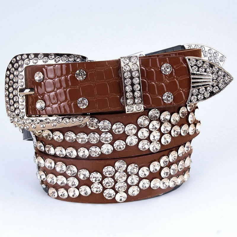 Brown Rhinestone Studded Belt