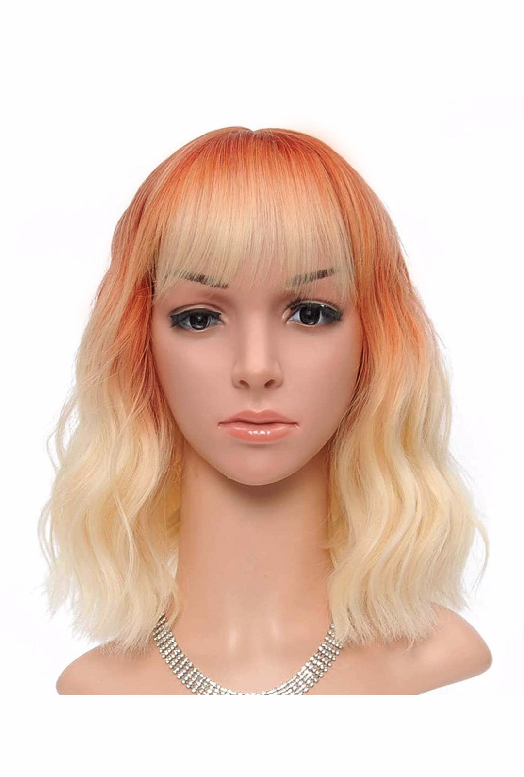 Soft synthetic hair with a natural ombre Red to Blonde Ombre colour and a loose wave pattern. Change up your look with a wig! Available in a range of natural and fun vibrant colours.