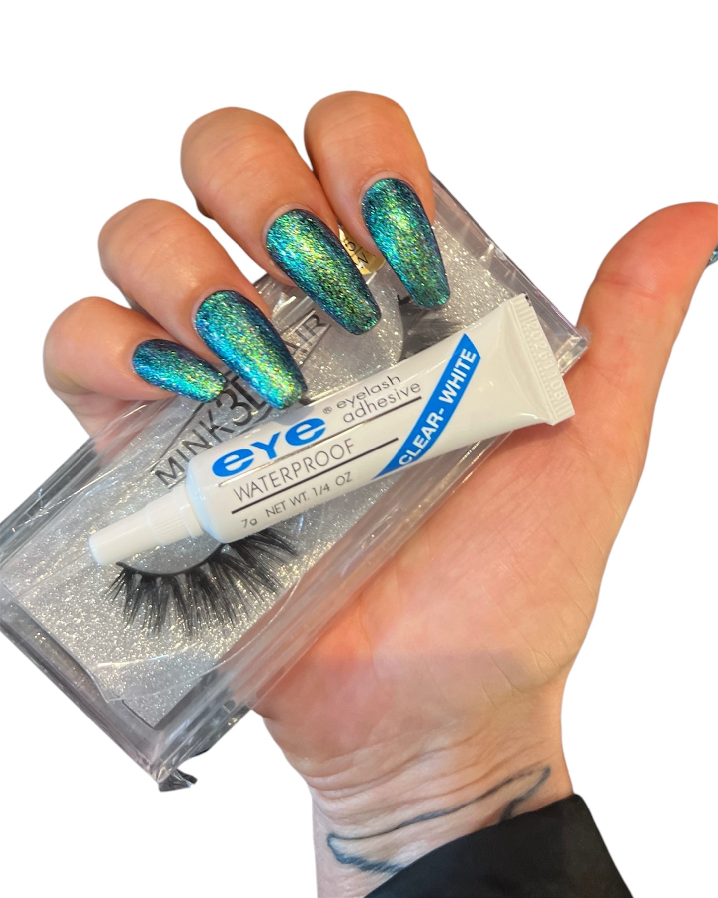 Eyelash Glue is perfect for spicing up your outfits with false eyelashes. Comes in either a clear or black. Both are waterproof. Happy lashing!