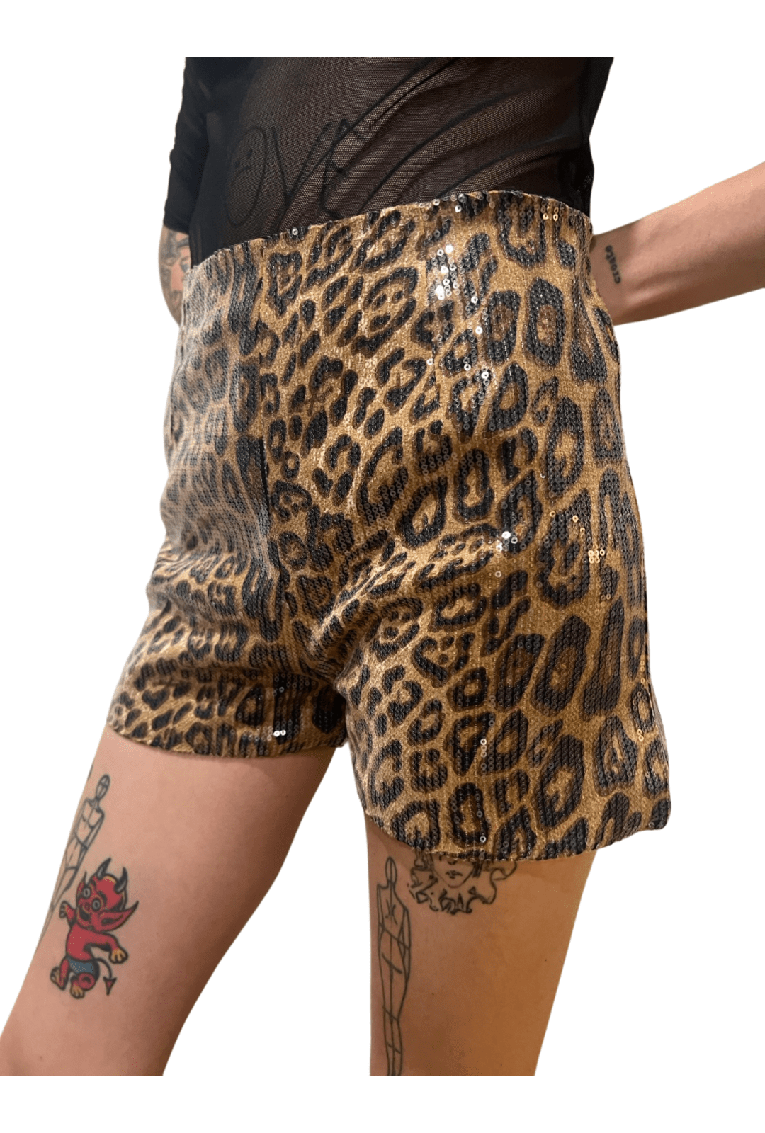Feel like embracing your inner diva Mob Wife? Then these Leopard Print Sequin Shorts is perfect for you. These shorts features a fierce leopard print with sparkling sequins and zip closure. Fitted more high waisted for extra comfort.