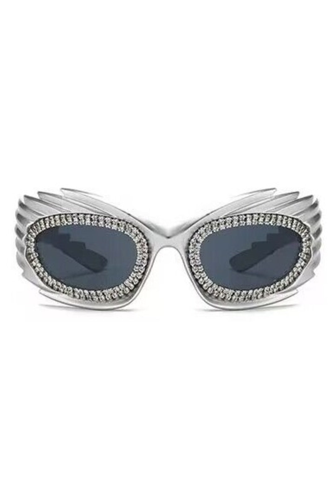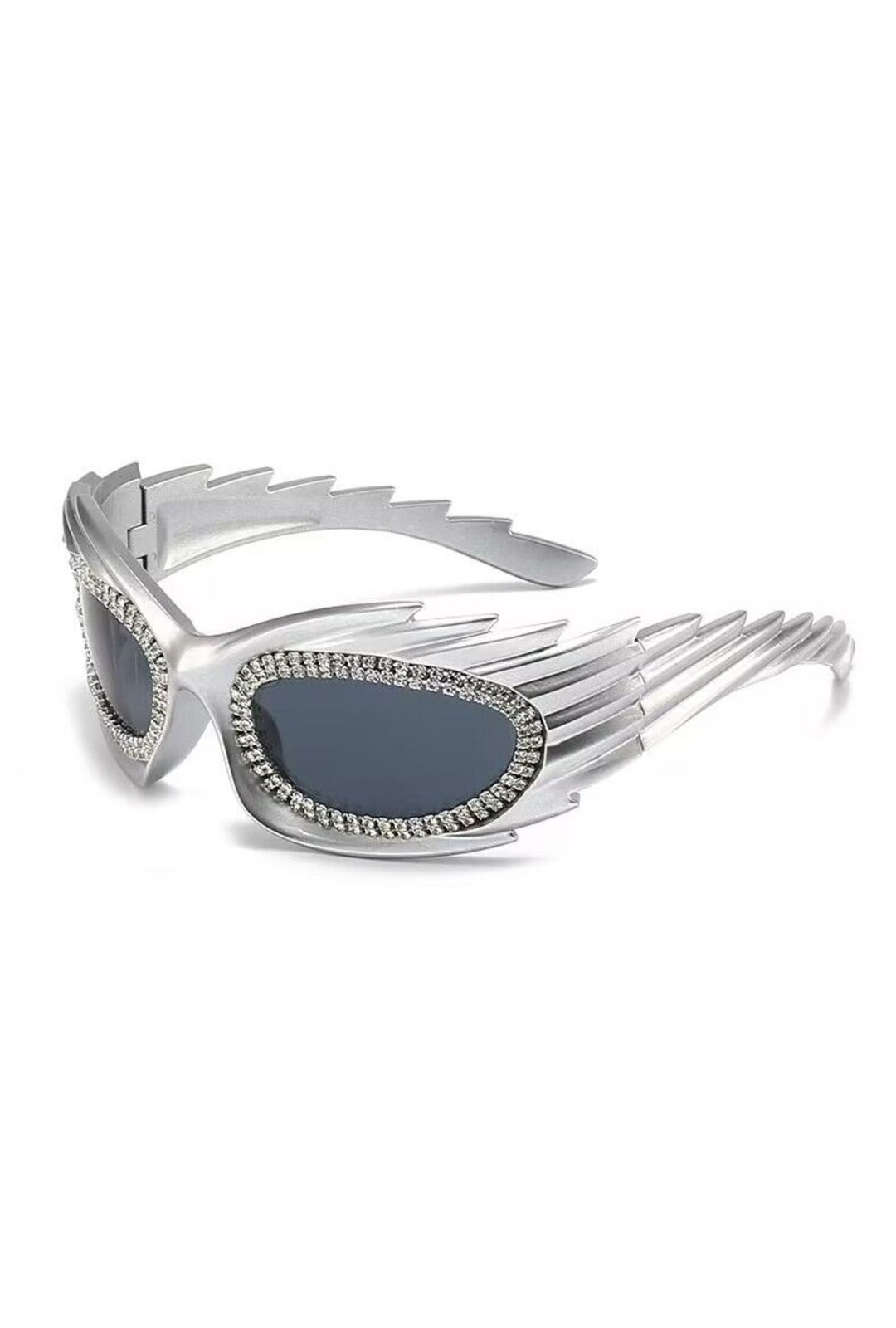 Metallic Silver Rhinestone Futuristic Glasses