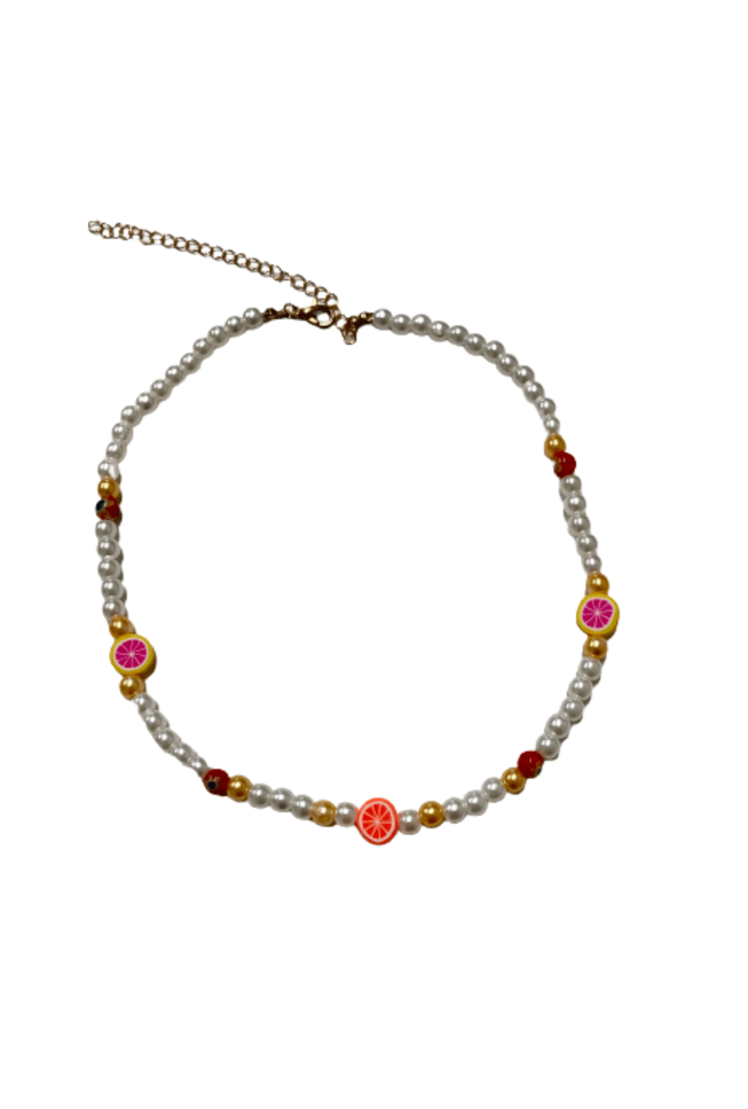 Bring a burst of juiciness to your wardrobe with this one-of-a-kind Orange & Grapefruit Pearl Necklace. Dripping with delightful citrus pendants plus white and orange pearls, it's sure to make a juicy statement!