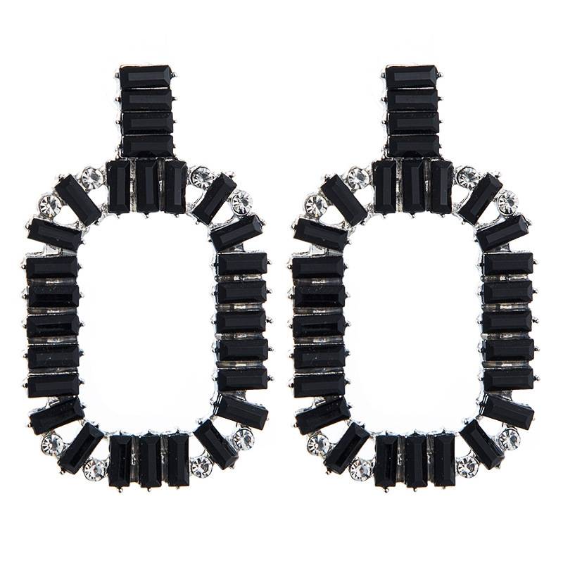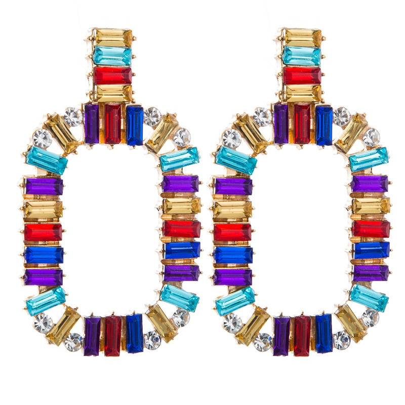 These large oval earrings are the perfect finishing touch for your next Gatsby or 1920s outfit! Featuring rectangular gems and small diamontes, these earrings are sure to make you sparkle.