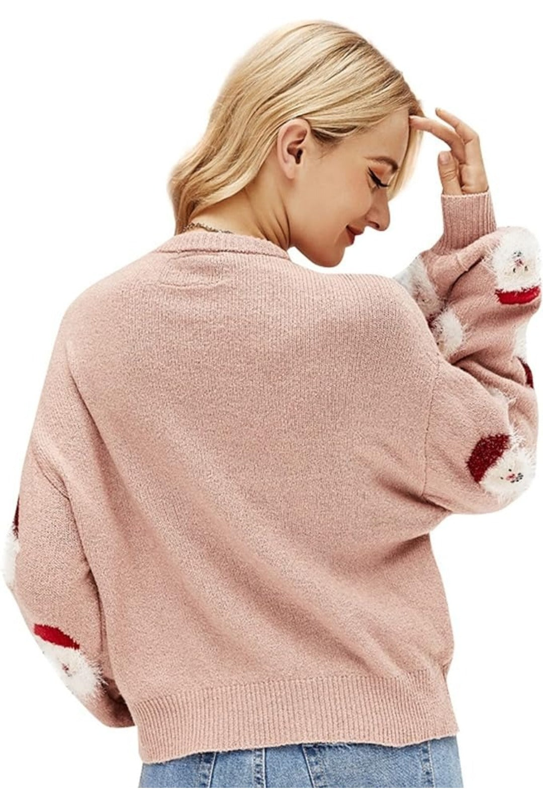 Celebrate the holidays in style with this cute pink santa sweater! It features a festive design with santa glasses for a fun, playful touch. Get ready to embrace Christmas with this unique, one-of-a-kind sweater. Put it on and take your festive look to the next level!