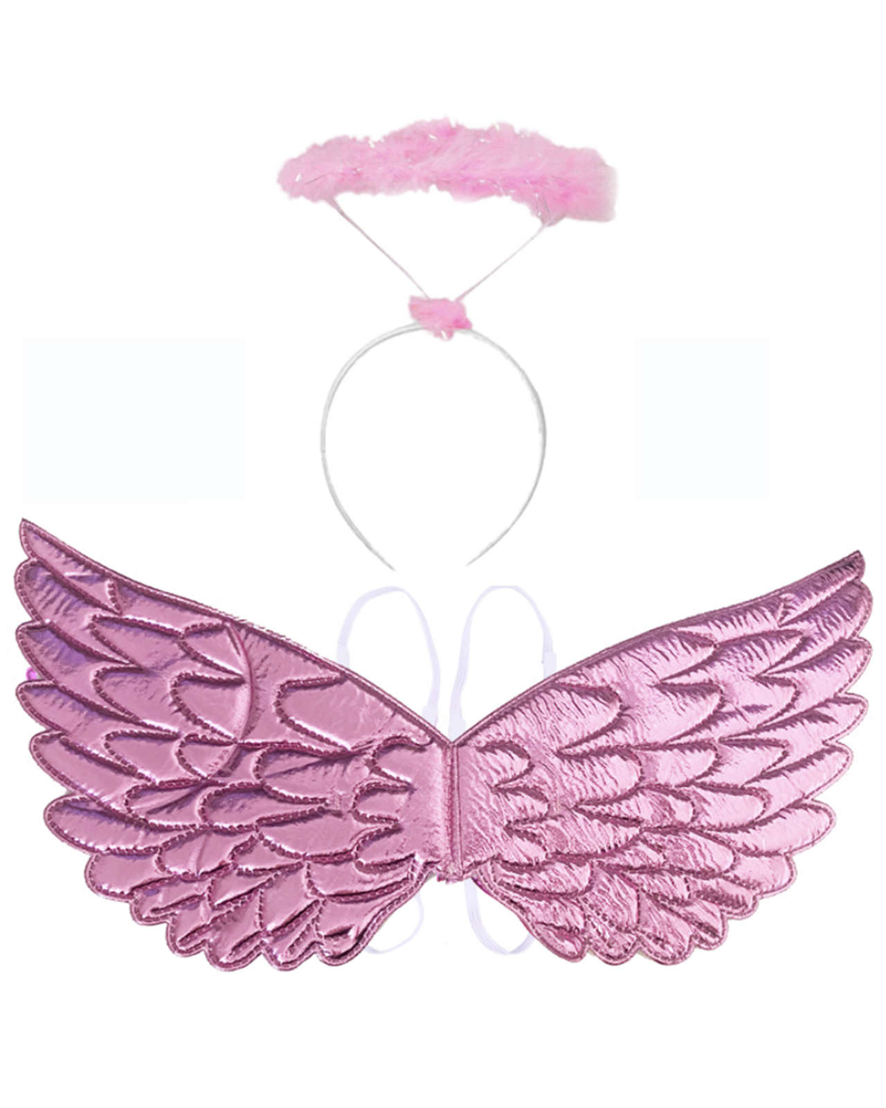 Fluffy pink halo and shimmery pink Wings. 45cm Diameter. One size fits all.