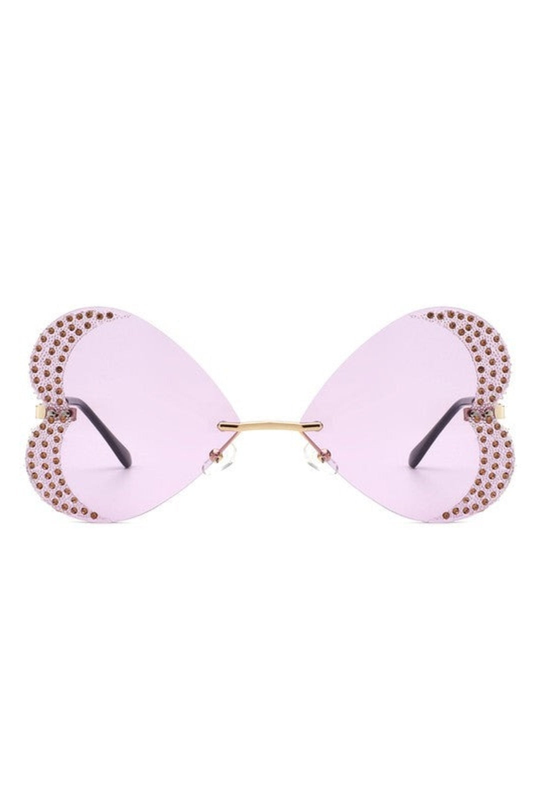 Purple Diamanté Rimless Heart Glasses