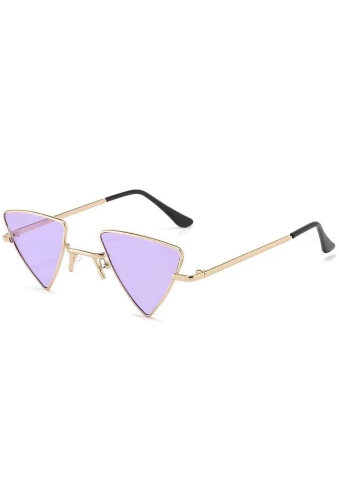 Get ready to stand out with our Purple Triangle Glasses! These avant-garde glasses feature a trendy triangle shape with bold gold frames. Perfect for festivals or raves, their purple tint adds a fun twist to your look. Channel your inner cool with our rave fit design.