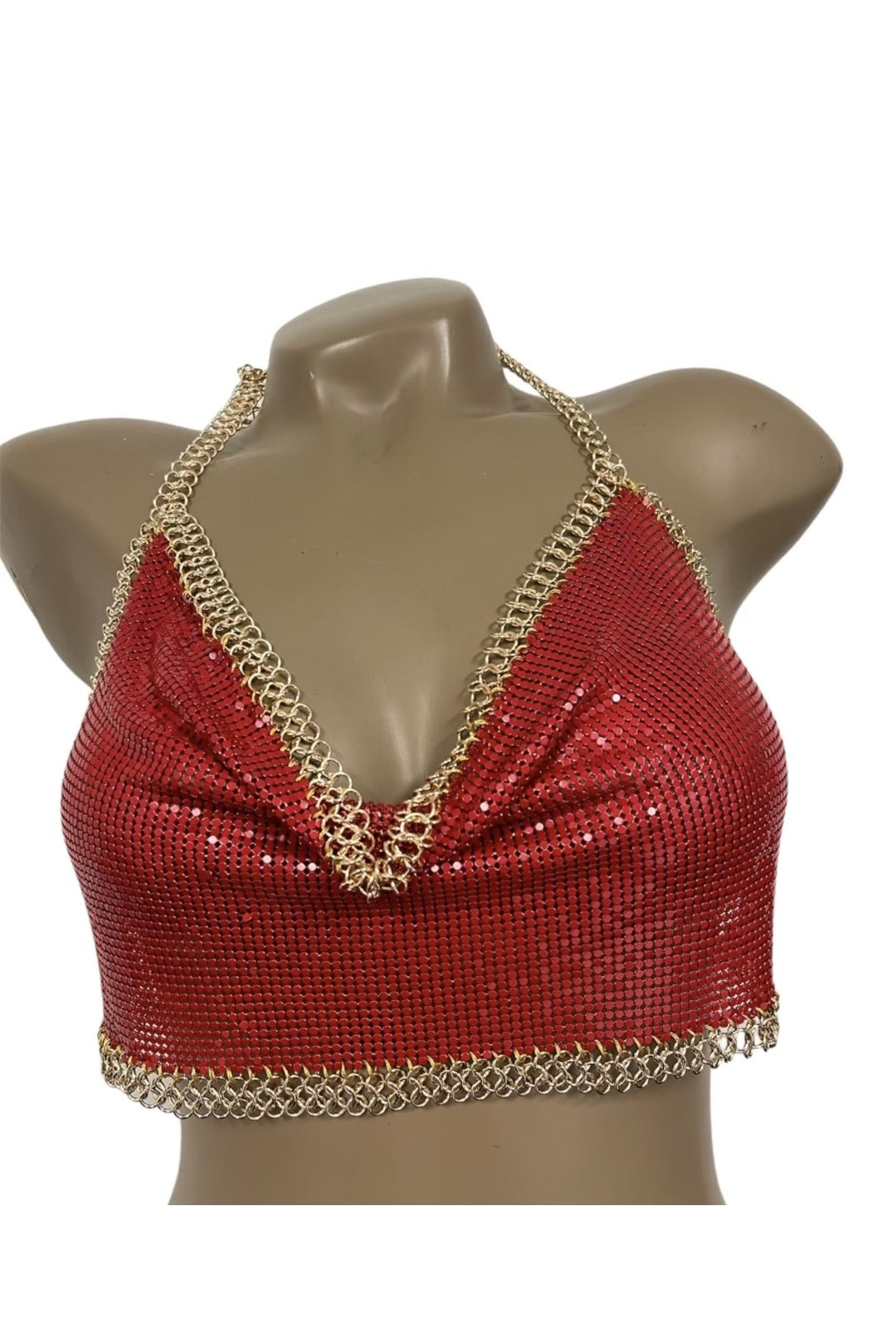 This Red Mini Rectangle Mesh Top is a must for any festival-ready wardrobe! Mesh your way through the night in this red chain mail top with gold hardware. Shine like the star you are and look dynamite wearing this one-of-a-kind look. Get wild and free in style! O/S fits AU Size 6-12