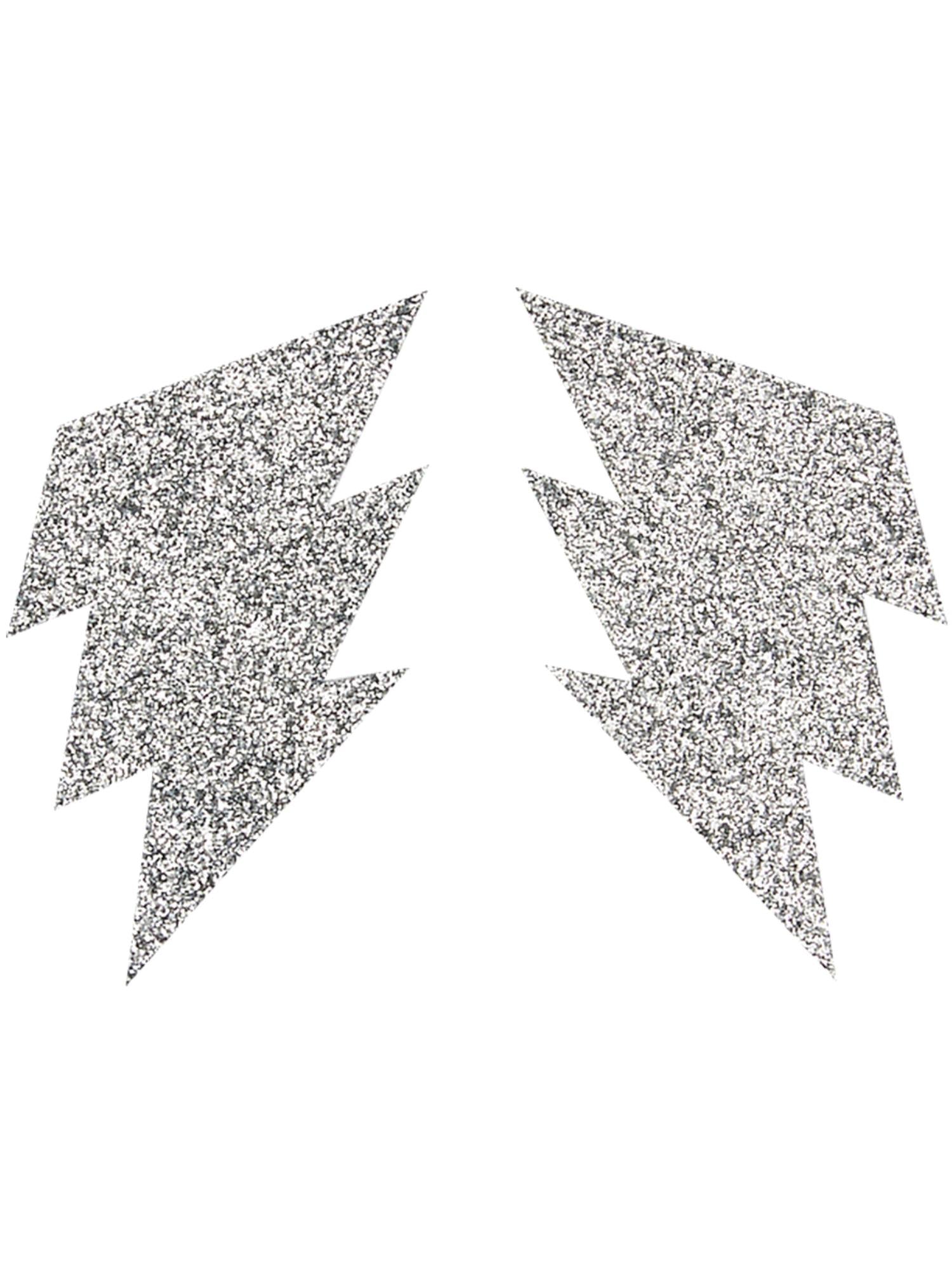 Strike a pose with these electrifying silver glitter lightning bolt nipple pasties! Perfect for burlesque performances, festival flair, or pride celebrations, these eye-catching pasties deliver serious sparkle and attitude. Embrace your bold side and let your confidence shine as bright as the glitter.