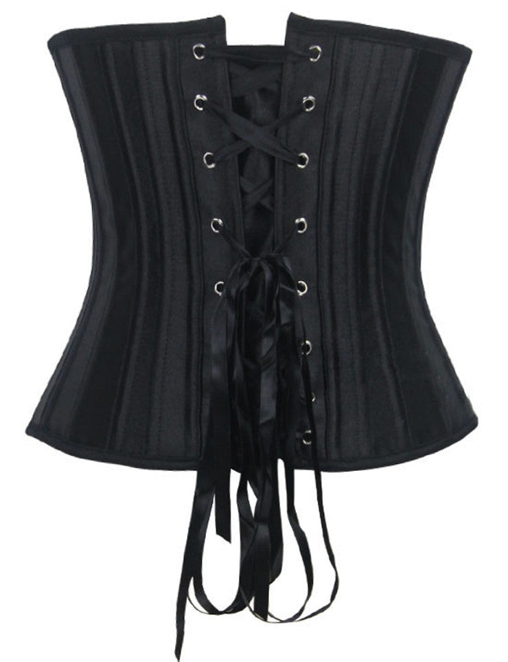Perfect for adding shape over or under your clothing, this black satin lace up corset sits under the bust and is focused on giving you a slimmer waist shape.