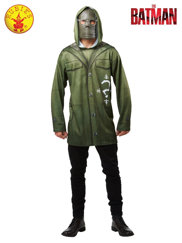 • Hooded, long sleeved hyper-real costume top with digitally prinred undershirt and white question mark logo at chest