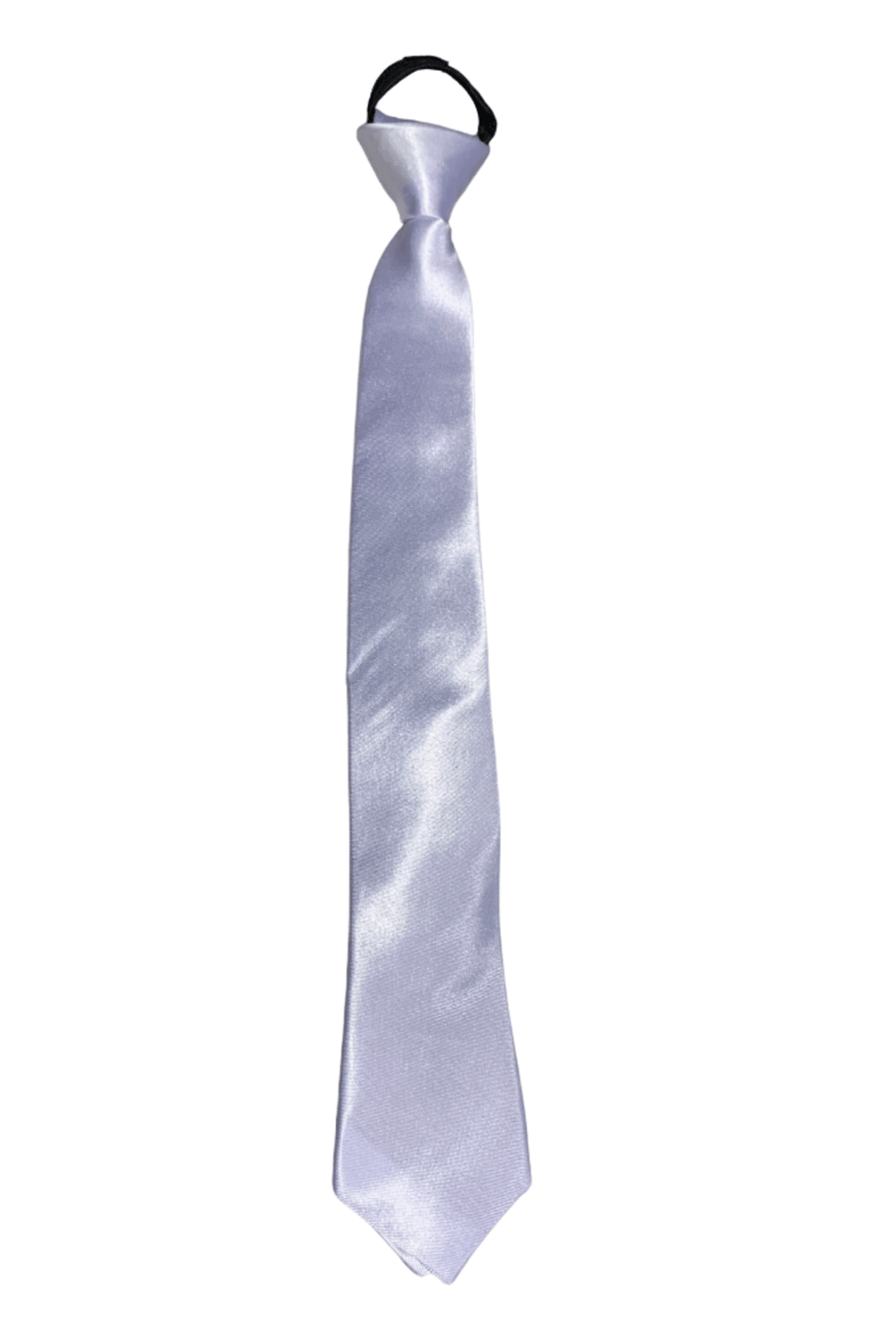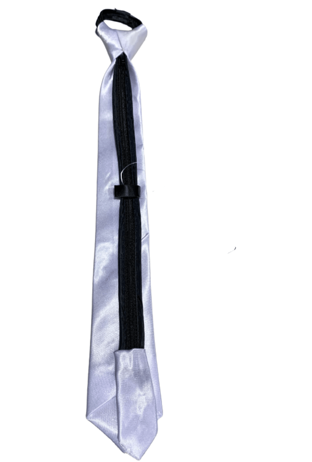 Punk and glam in one. This white pre-tied tie will look great with an emo or punk look.